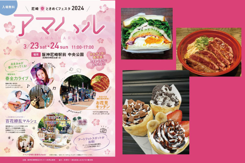 アマハルフェスタ | 2024.03.23-03.24 | 阪神尼崎駅前中央公園当協会でキッチンカーの出店者募集・反社チェック・飲食エリアの運営・衛生・防火管理を実施させて頂きました。 |