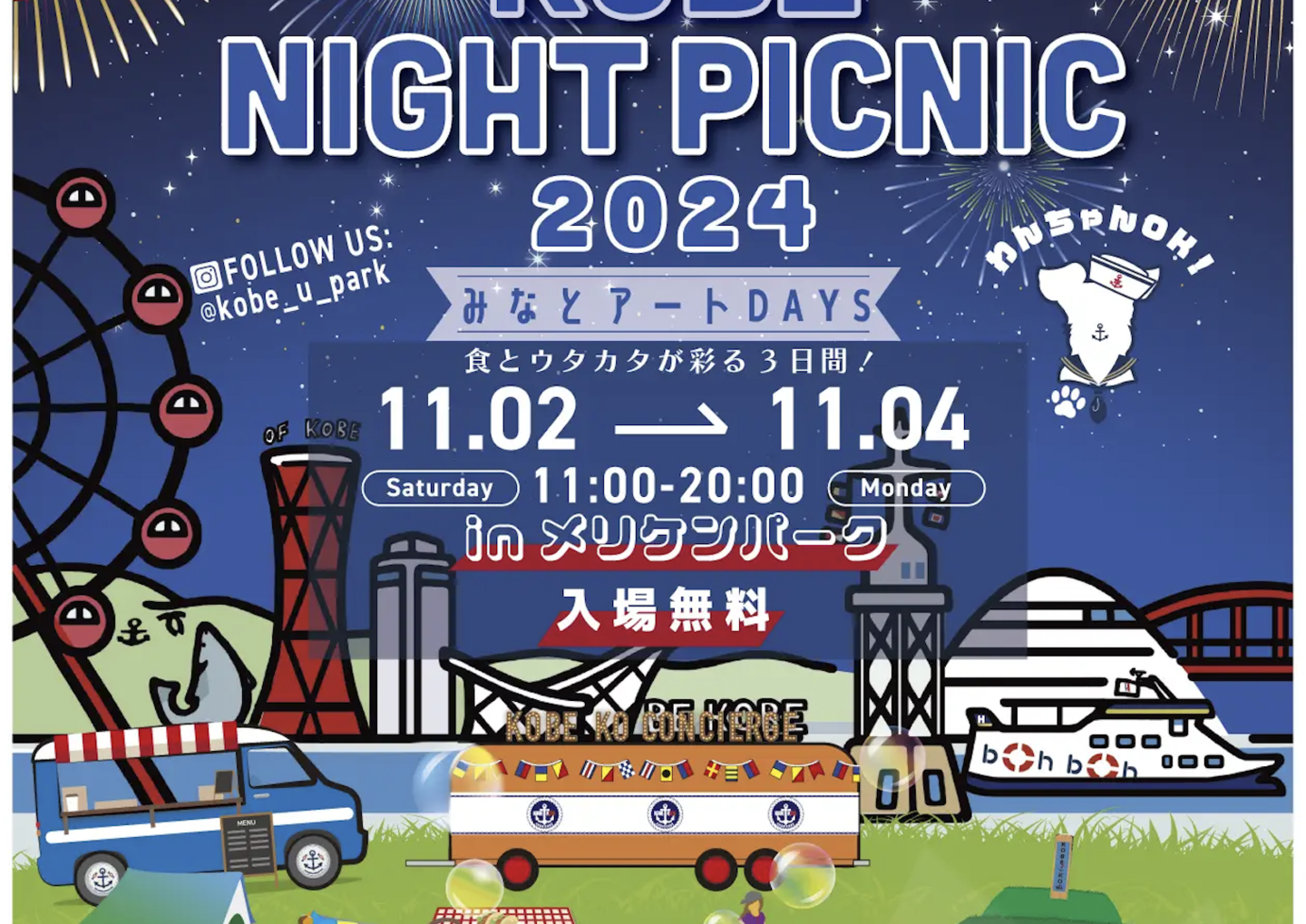 KOBE NIGHT PICNIC | 2024.11.02-04 | メリケンパーク当協会でキッチンカーの出店者募集・反社チェック・飲食エリアの運営・衛生・防火管理を実施させて頂きました。 |