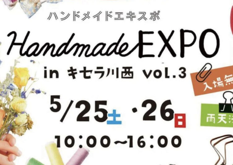 ハンドメイドEXPO in キセラ川西 vol 3 | 2024.05.25 - 05.26 | キセラ川西当協会でキッチンカーの出店者募集・反社チェック・飲食エリアの運営・衛生・防火管理を実施させて頂きました。 |