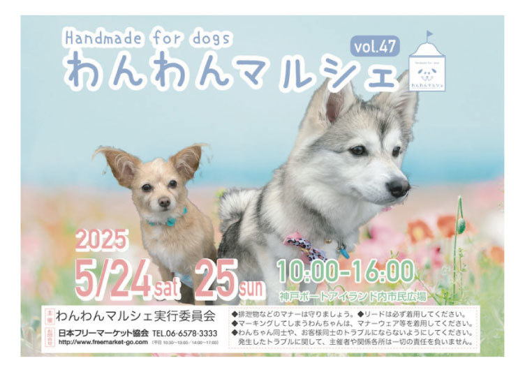 わんわんマルシェvol47 | 2025.05.24-25 | 神戸市民広場当協会でキッチンカーの出店者募集・反社チェック・飲食エリアの運営・衛生・防火管理を実施させて頂きました。 |